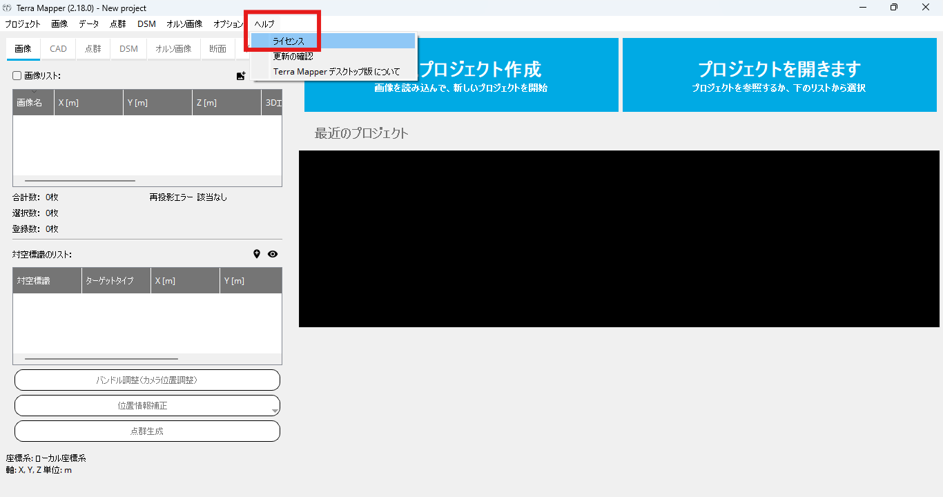 ヘルプ > ライセンス をクリック