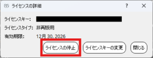 ライセンスの停止 をクリック